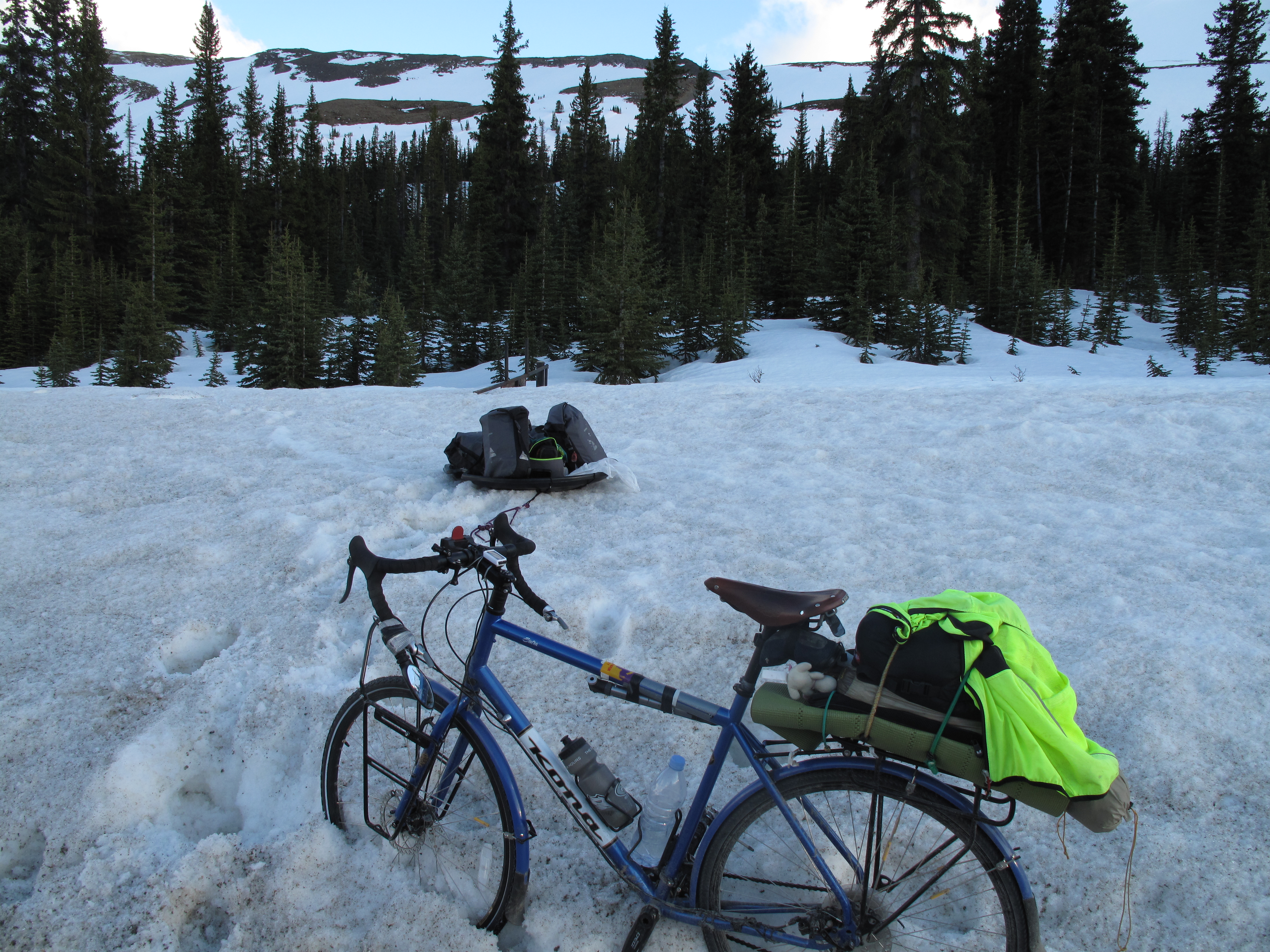 to the buildings starts to lose its integrity. What followed was two hour of hell! I could not take a step with breaking through the fragile top crust and immediately sinking to my waist in snow I ended up stashing my bike and bag in the bush and crawling through the snow all the way to the Hostel! By the time I arrived at the building all my clothes were soaking wet and my feet legs and hands were freezing numb.