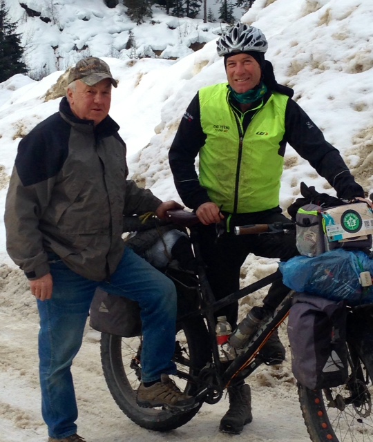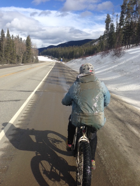 Met up with Jake and Julie Derksen near Moose Lake and they joined my on their Fat Bike, Julie rode all the way to Jasper with me.