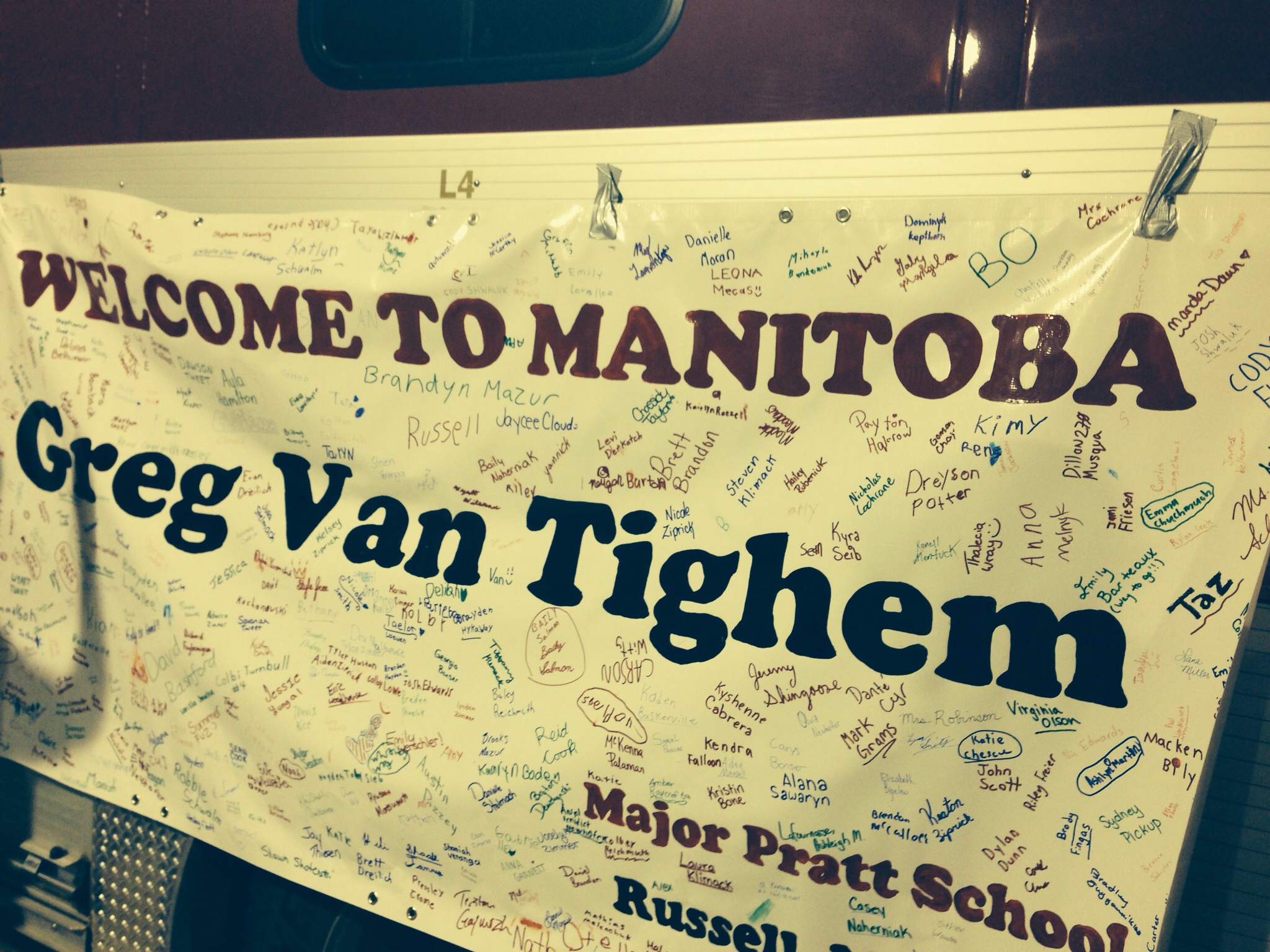 At the Manitoba border I was met by Engine One Russell Fire rescue and a large welcoming banner.
