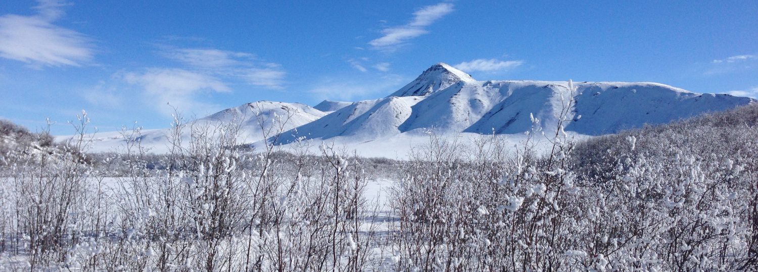 April 9th : I woke to a clear cold morning and the site of fox tracks all around my tent and bike, but no gear missing or chewed up this time. After filling my growler thermos and hydration bladder with boiled snow and packing up while chomping down a few granola bars I was off into the clear blue yonder feeling energized from yesterday’s record mileage and stellar cycling conditions, just over 50 k to Inuvik NWT, Canadas largest community north of the Arctic Circle.